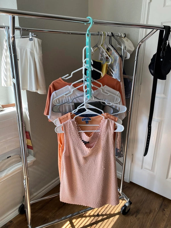 Prepare to be amazed! each hanger transforms 1 hanger's space into 9. imagine tripling or even quadrupling your closet space instantly. it's like adding an extra closet without the renovation!